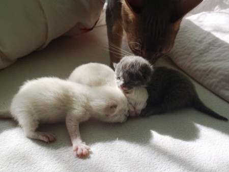Všechny koťata jsou již zadaná, Bellinka jede dělat radost do Bohumína, Bibinka bude dělat společnos třem krásným Ruským kočkám v Kopřivnici a Bishouek se stěhuje do Prahy, kde bude mít za parťáka stejného kocourka Ruského bílého s odznaky.