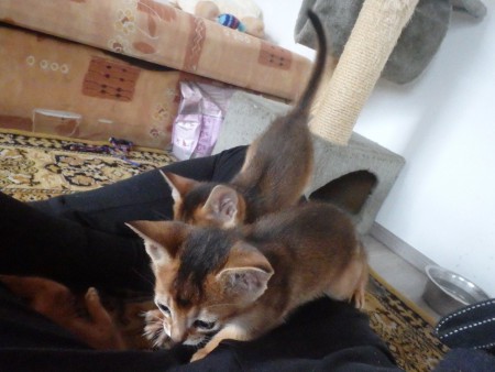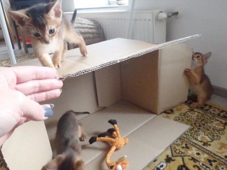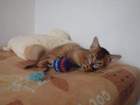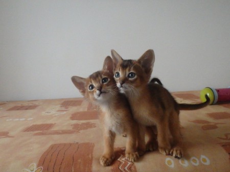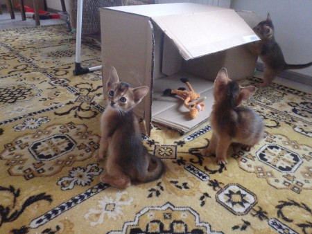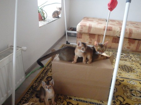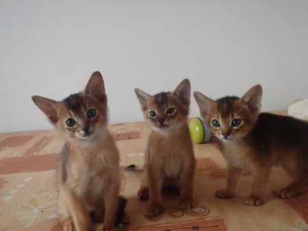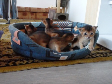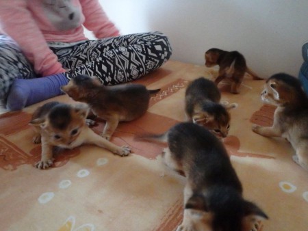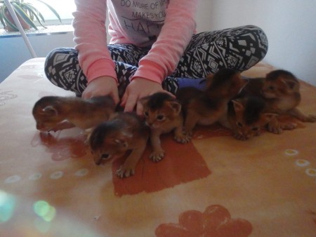 Habešská koťátka, pět chlapečků divoce zbarvených (ruddy) a jedna holčička divoce zbarvená (ruddy).